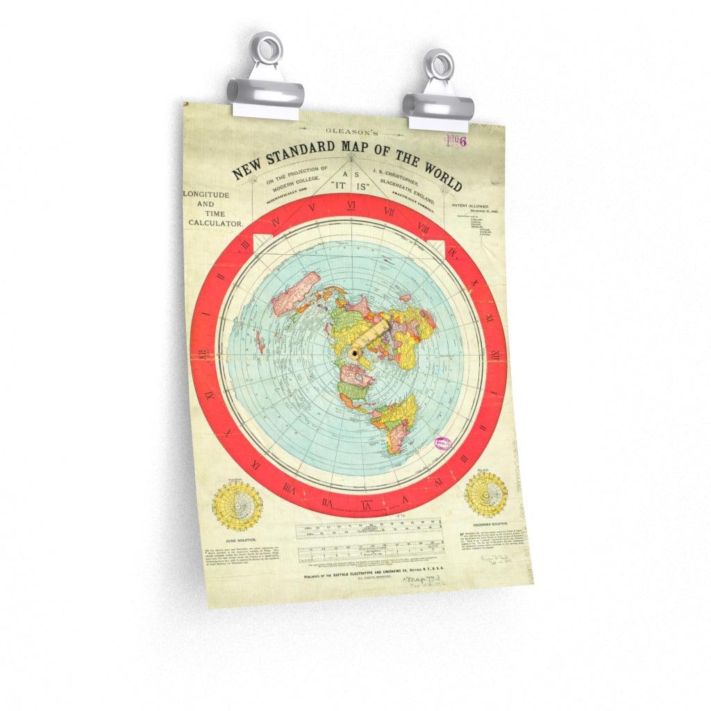 Flat Earth Poster New Standard Map of the World Gleason's
